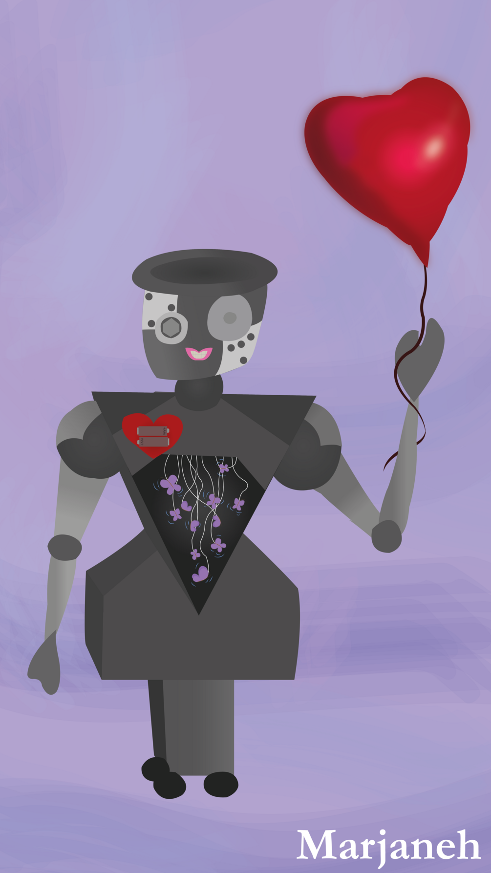 Phone wallpaper capturing the unexpected love of a charming robot, based on an original digital illustration. Fondo de pantalla para celular que captura el enamoramiento inesperado de un encantador robot, basado en una ilustración digital original.