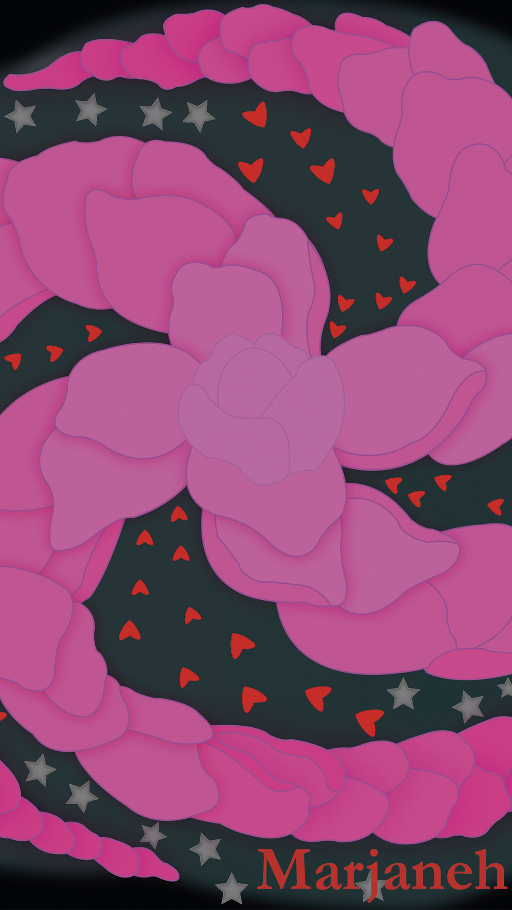 Galactic Flower is a mobile wallpaper (1080 x 1920 px) that blends cosmic beauty with romantic charm. It features a colossal flower spinning through deep space, its long pink petals unfurling like the arms of a spiral galaxy. Around it drift tiny silver stars and bright red hearts, creating a tender, magical scene full of motion. This illustration reimagines traditional galaxies with an adorable, fresh twist. Based on an original digital artwork. Ready to download and install instantly!