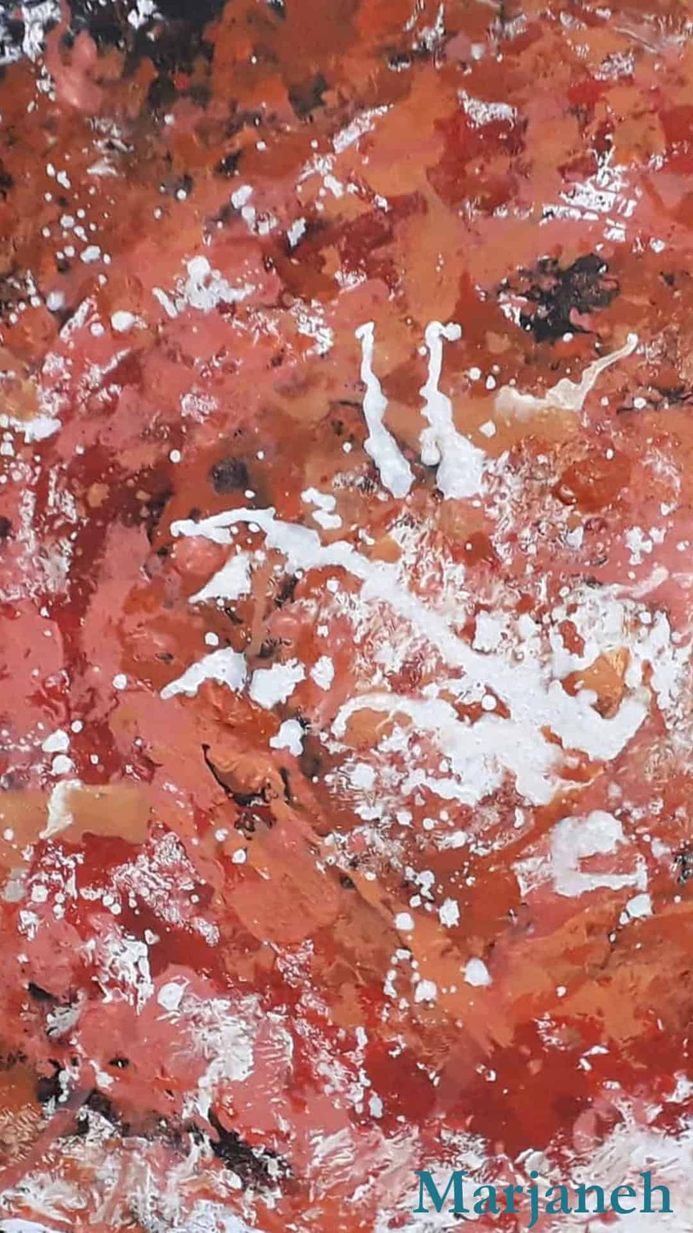 Phone wallpaper inspired by an orange galaxy, created from an original acrylic painting. Fondo de pantalla para celular inspirado en una galaxia naranja, creado a partir de una pintura acrílica original.