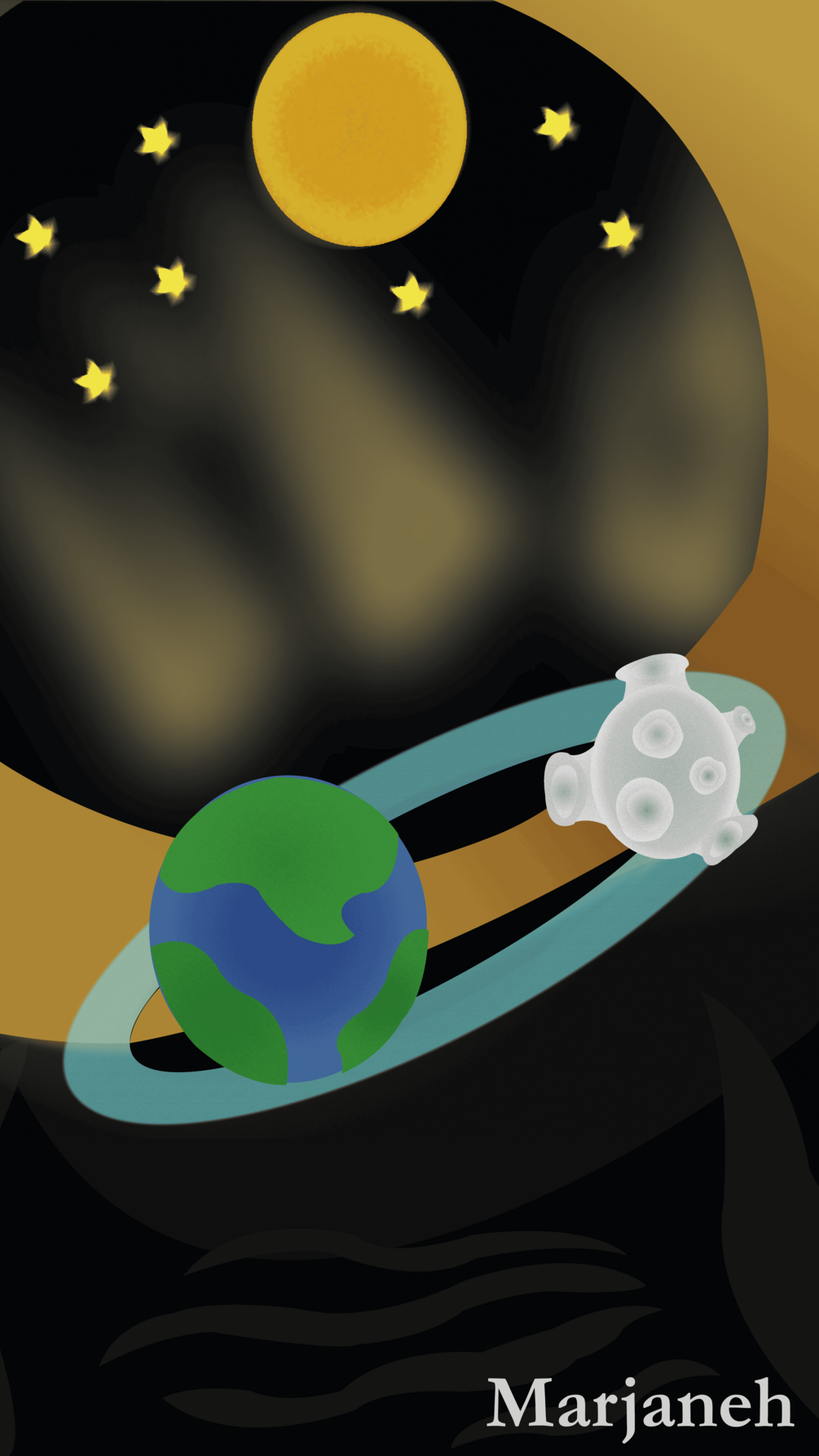 Earth and Moon Dancing in Space is a digital illustration that captures the beauty of space, with Earth and the Moon orbiting in harmony, surrounded by stars and bathed in sunlight. Perfect for those looking to add a cosmic and elegant touch to their everyday life. Now available as a high-resolution wallpaper for your phone.